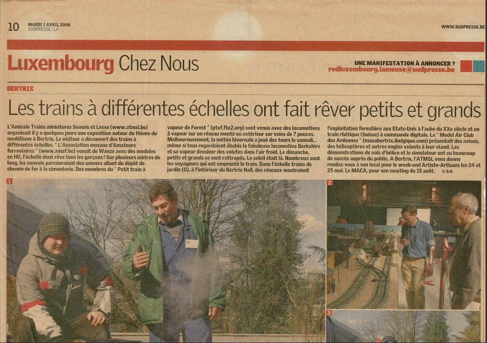 L' ATMSL (Amicale Train Miniature Semois et Lesse) est située à Bertrix (6880). Nous rassemblons les amateurs de trains toutes échelles confondues (N, HO, G et 7 pouces ¼ ).